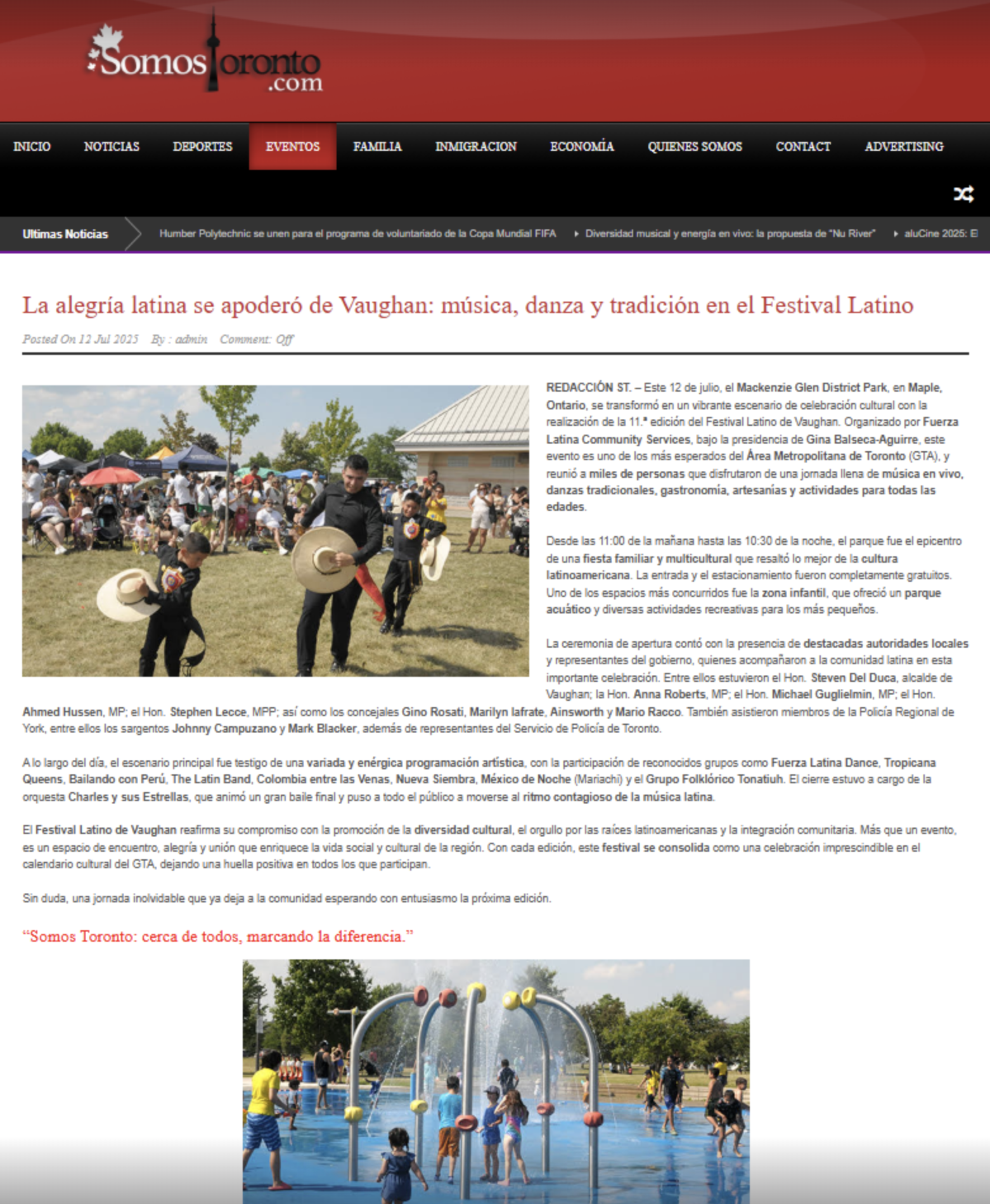 an amazing community centre dedicated to helping the Latin American population in Vaughan and the rest of the GTA. I love their unique programs such as the employment workshops, monthly breakfast program at 9Baci, their Adelante live TV show, their annual Vaughan Latin Fest in July, and the Fuerza Latina Gala in October. It is amazing how even local MPs and politicians are connected to this organization